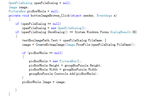 38. Go outside of the event click function, define a variable with OpenFileDialog class.